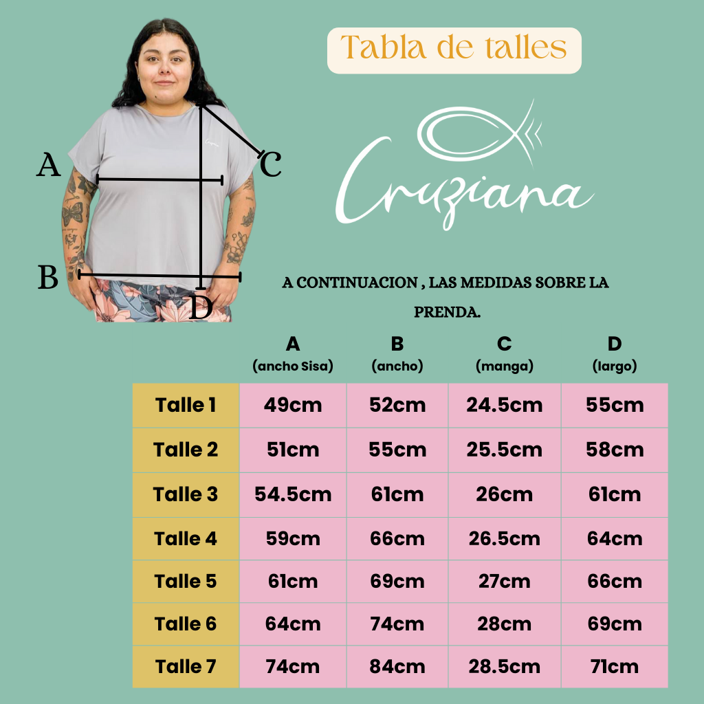 Recomendación: Si preferís usar la remera más ajustada, te sugerimos elegir un talle menos (ver fotos como referencia).